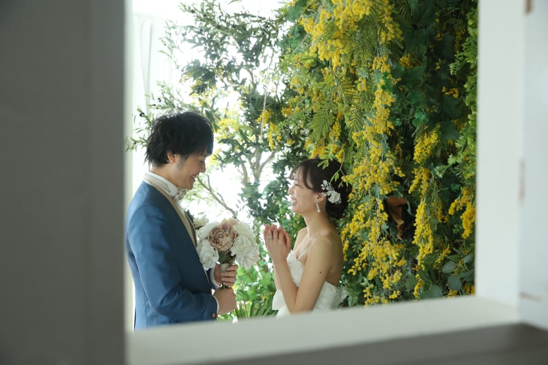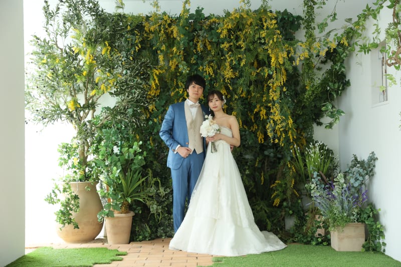 次の背景はミモザの背景。 時間帯は夜だったのですがライトを使って日中のような自然な光を作り出すことが可能。 なので天気の心配もなく安心して撮影していただけます。