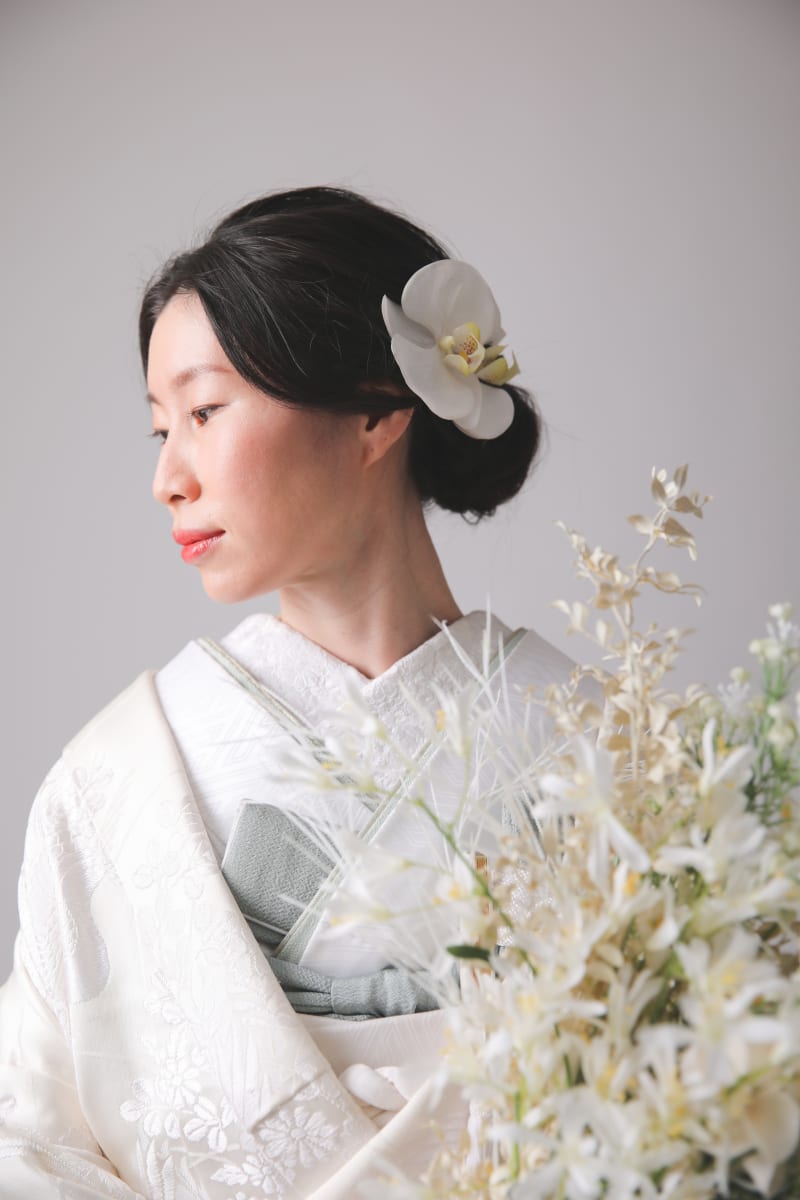 華やかな赤色の色打掛に合うコーディネートとして襟元はポイントで緑色とゴールドを入れてます! 着物の色味と統一感を合わせる為に、色鮮やかなブーケを使ってみるのも可愛いです◎ 赤色の色打掛に黒色の紋付はフォーマルな印象を演出できます。 紋付を少し豪華にしたいという方はこのように袴をグラデーションにするとより着物が際立ちます! 色打掛とは違う印象になるこちらの白無垢。 伝統的な真っ白の小物ではなく青系で小物をコーディネートするととてもおしゃれです◎