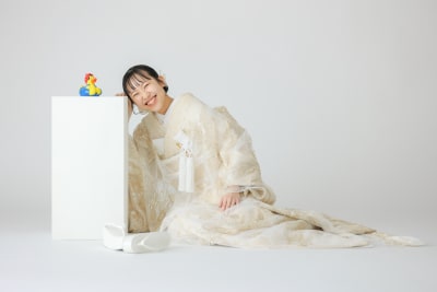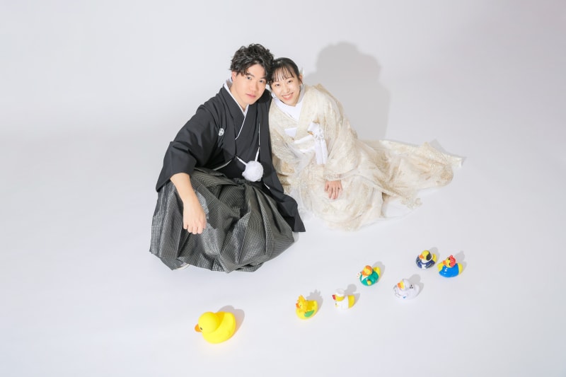 お顔を近づけてアヒルと。和装だけど、そんなにかっちりに縛られないお写真もらしさが出ていいと思います◎