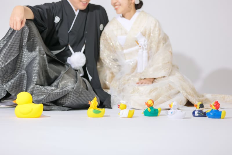背景がシンプルだからこそ映えるアヒル(笑) ご新郎様のポージングもとても様になっています◎