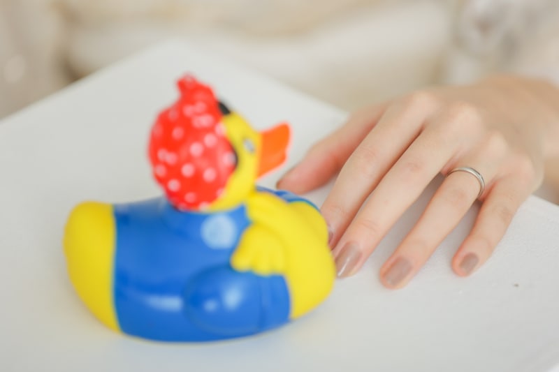 アヒル越しにお手元も。ネイルや指輪はぜひ写しておきたいですよね。