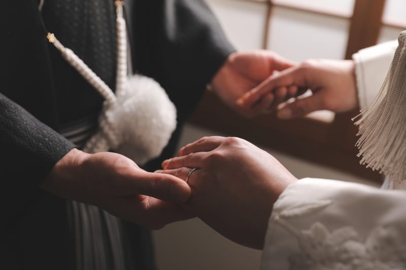 指輪の手元カットも。
