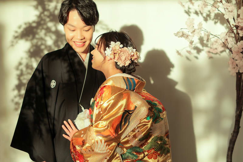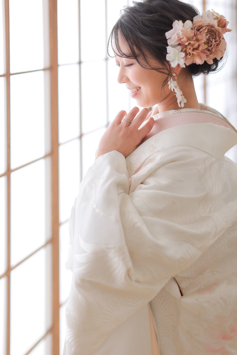 色打掛へお着替えして。夕暮れ時の光がいい感じに差し込んできました◎