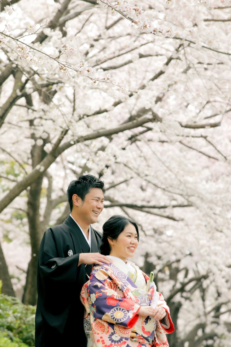 引きのお写真は桜と共に公園での緑の植物とも相性がいいので全体を撮ってもらえることも可能です!