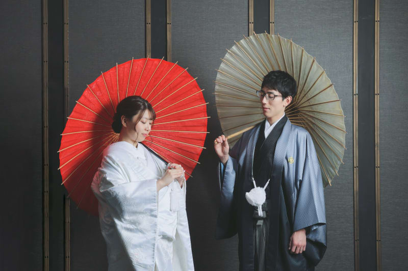 ブラウン背景ですこし格好良い雰囲気を、 和傘も映えます◎