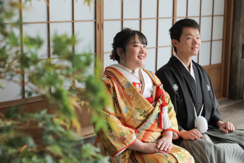 縁側に腰掛け、しっとり和装らしく。自然光が入るスタジオなので、ロケーションのような写真が撮れます!