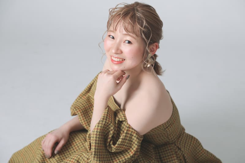 カメラ目線に思わずドキッと。ハイトーンの髪色と、イエローのカラードレスの相性がバッチリでした!