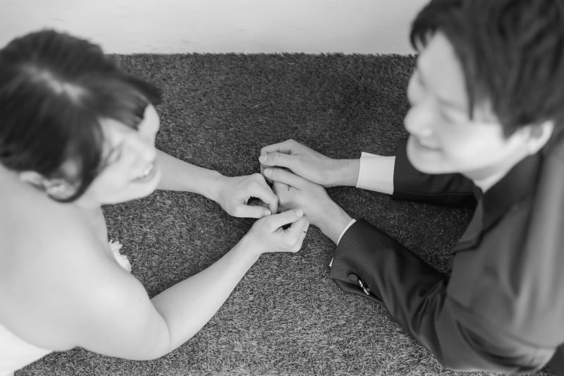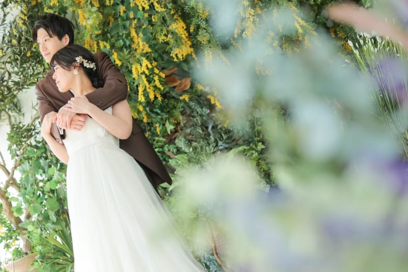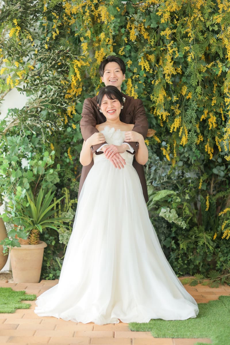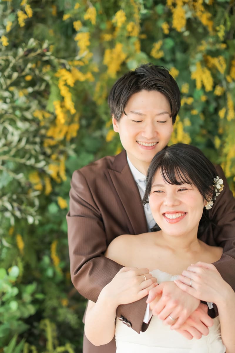 お二人の身長差を活かしたくてバックハグをしていただきました。嬉しそうな表情がとってもいい。