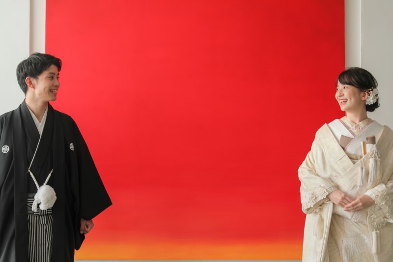お着物が引き立つ真っ赤な背景もご用意しております!