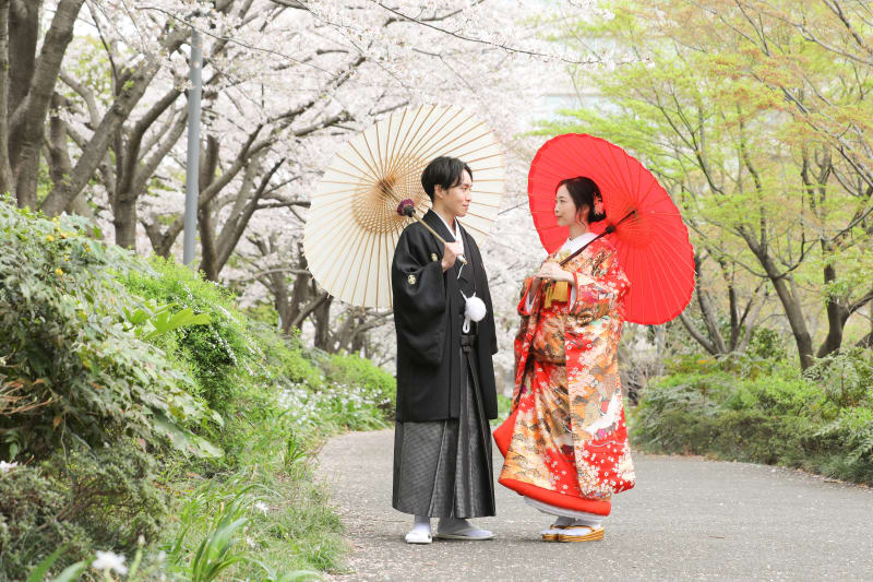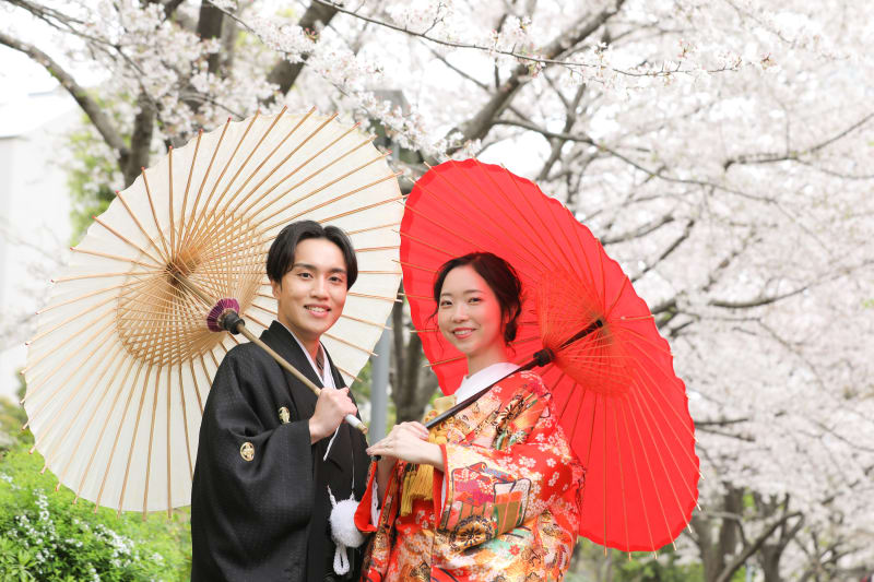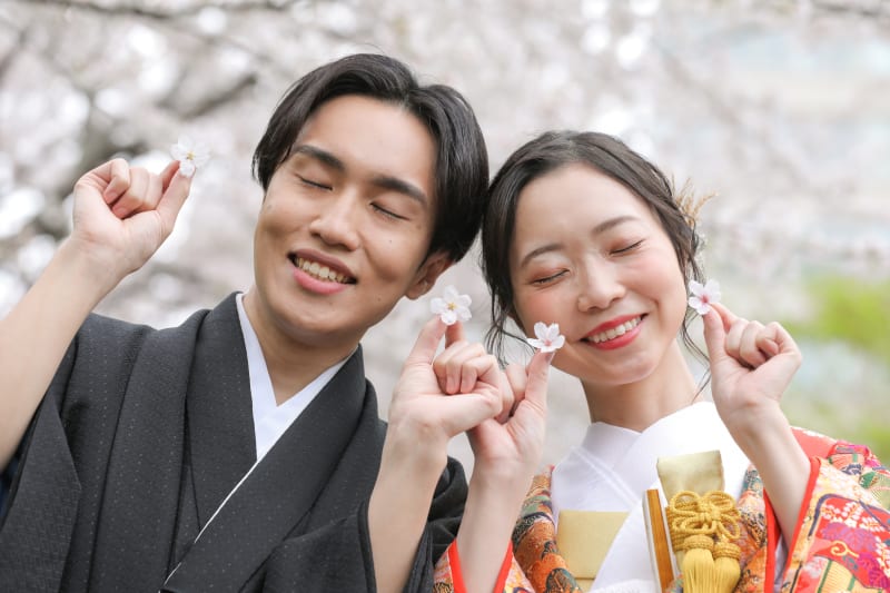 柔らかい雰囲気のお二人。桜のロケーションがお似合いでした!!