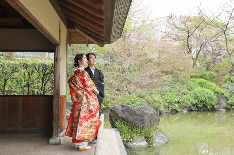 まるで日本庭園のような和装にぴったりの撮影スポットもあります!