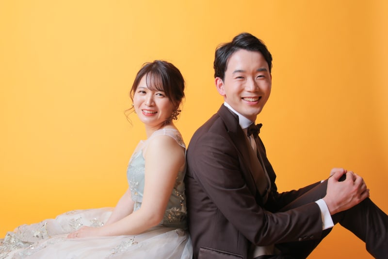 シンプルな背景はお二人の表情や、お衣装の柄などを引きたててくれます!