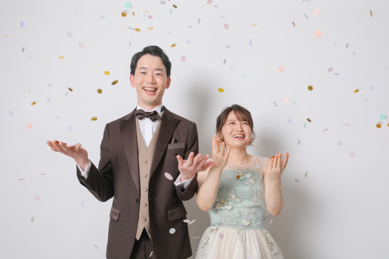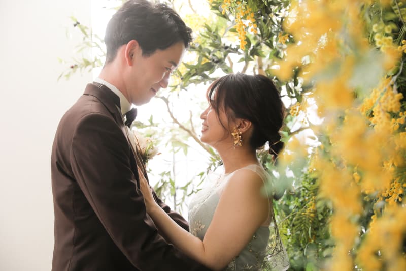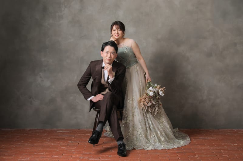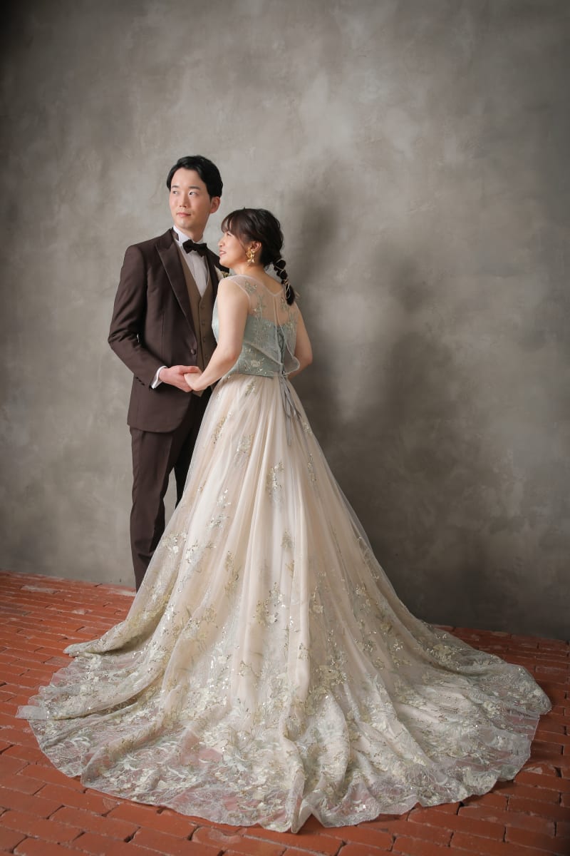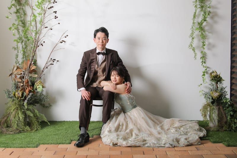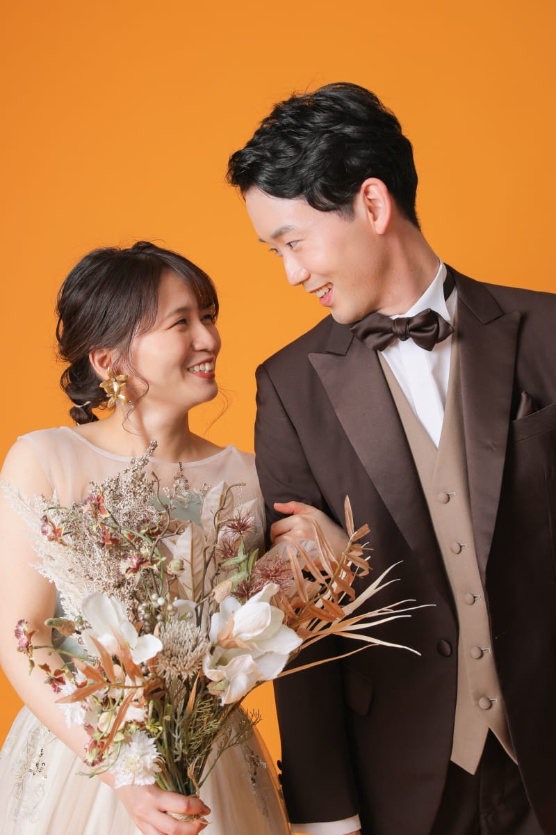 カラードレスとブラウンのタキシードの相性がバッチリでした!