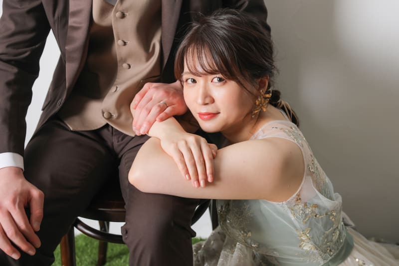椅子を使ってナチュラルに。お二人の自然な笑顔がかわいい!
