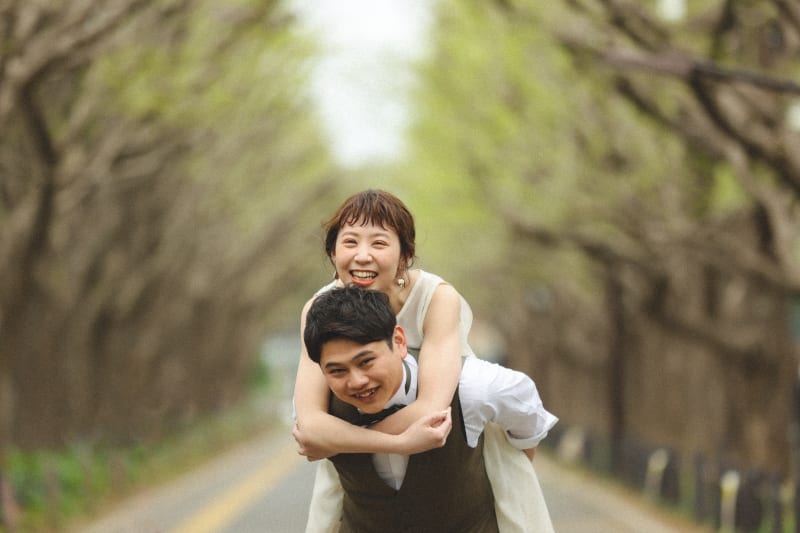おんぶしてーって言ったら新婦さんが満面の笑みでジャンプ!!