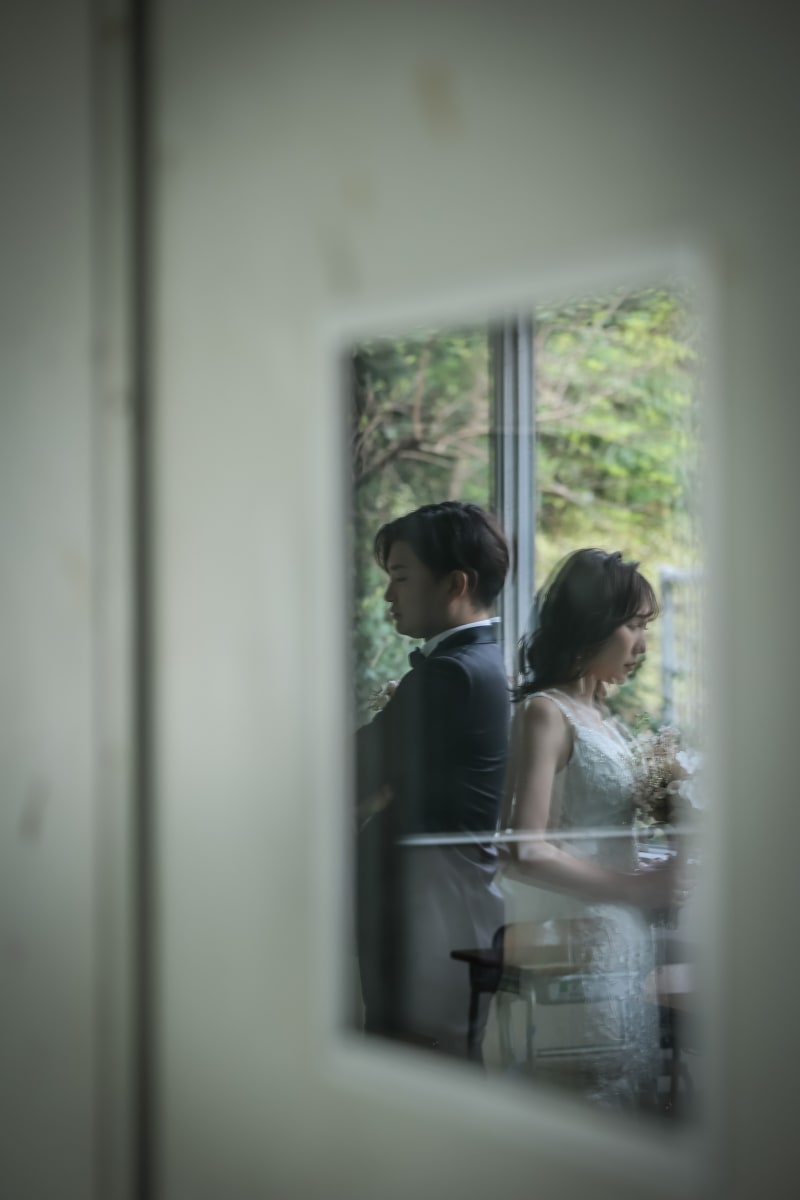 教室のドアのガラス越しに。お二人のクールな表情も決まっていますね。