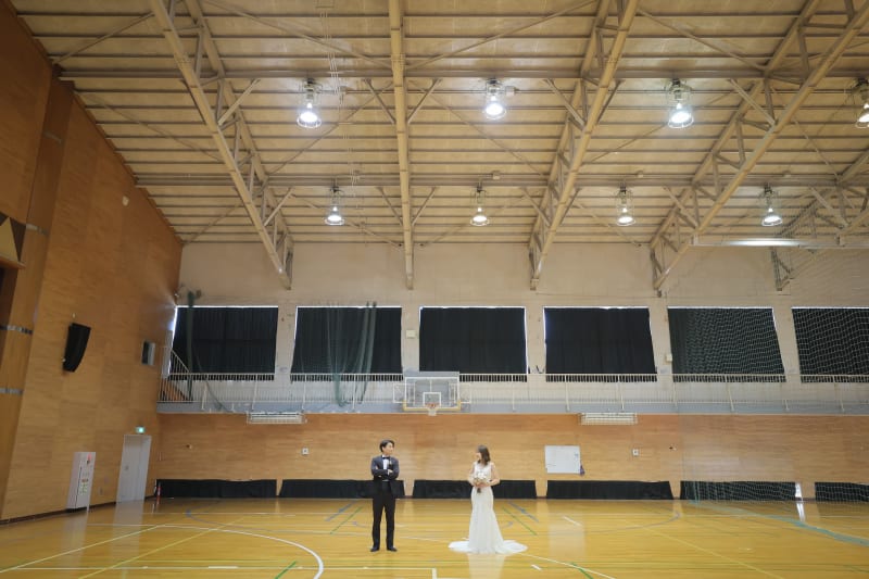 最初にとっても広い体育館を思いっきり贅沢に使って撮影しました。