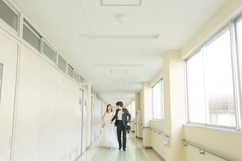 学生時代には叶わなかった、廊下を全力でダッシュ!お二人とも楽しそう!