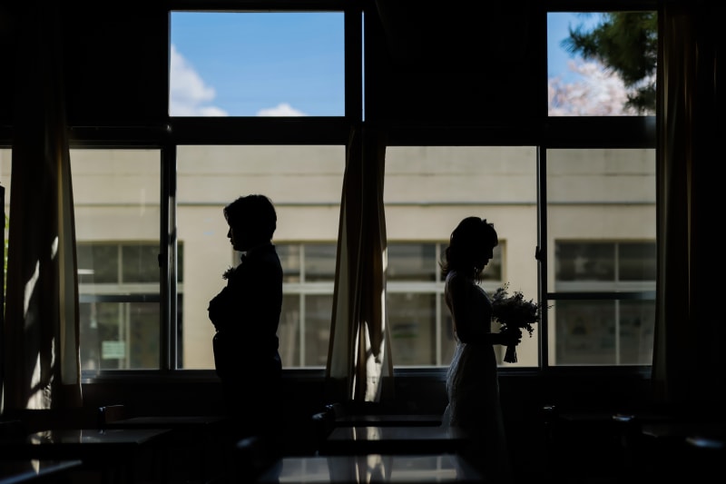 教室の窓を使っておしゃれでかっこいいシルエットも撮影しました。