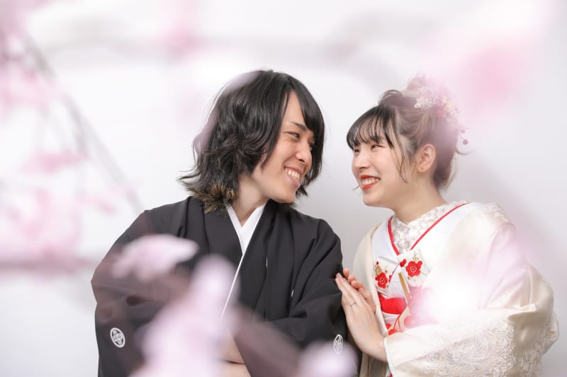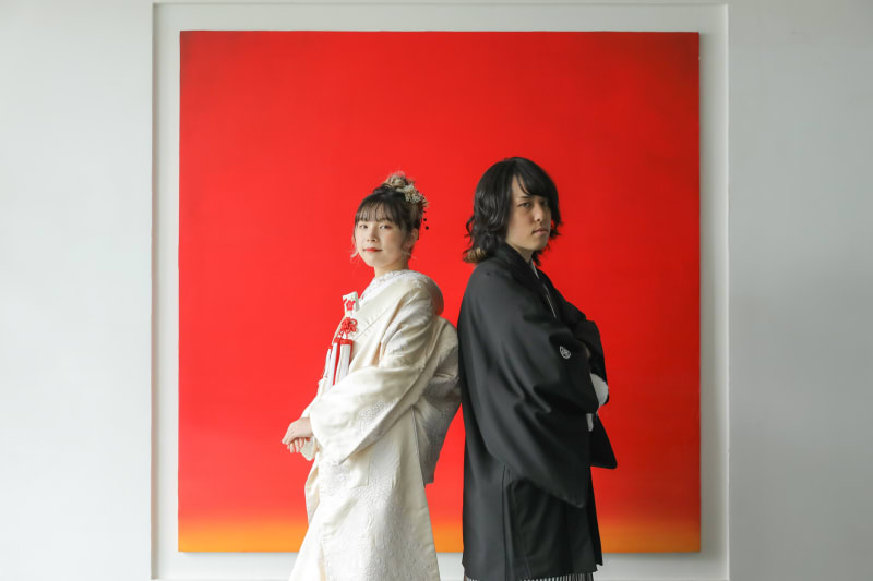 この赤背景は、シンプルなデザインですがインパクトがある背景!白無垢が映えます!