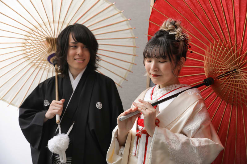 和傘を持つと一層和装らしくなります!自然な笑顔が素敵でした^^
