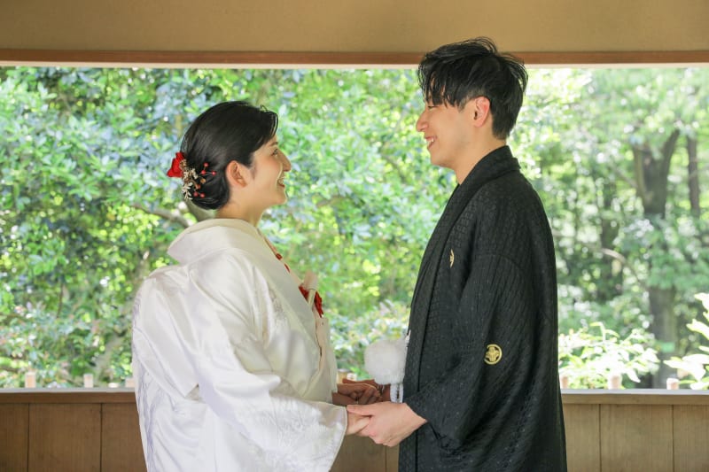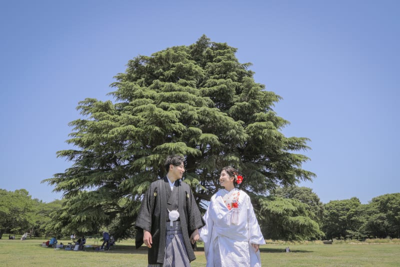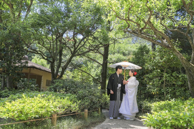 まずは和装でかっちりと!綺麗な木漏れ日が入ってくる晴れた日。新緑にお着物が映えてました!