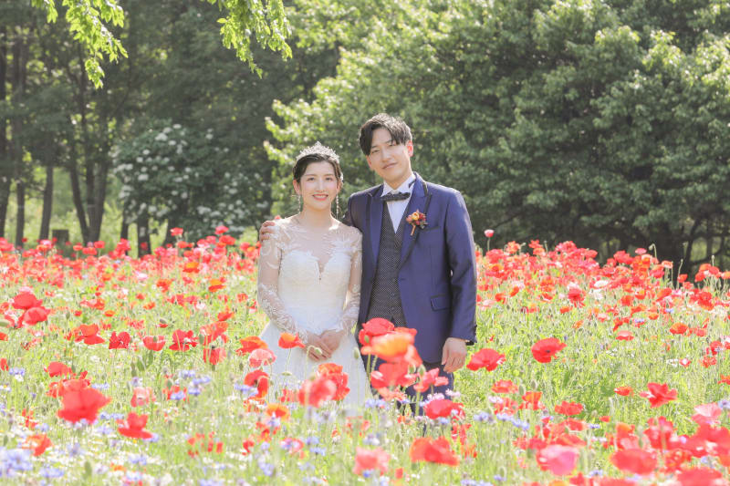 昭和記念公園といえばお花畑!色々なお花と一緒に撮影することが可能です◎