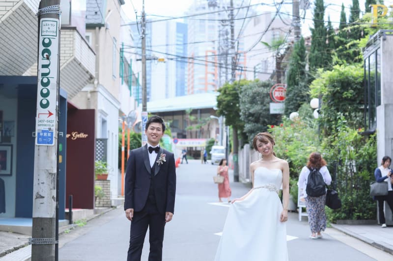 ちょっぴり人前で恥ずかしいという方もいるかもしれませんが、ウェディングドレスを着て普段歩く街中で写真を撮る♪なんともドキドキで逆に非日常感を味わえてテンション上がっちゃいます♪撮ってるこちらも楽しくなっちゃいます!!