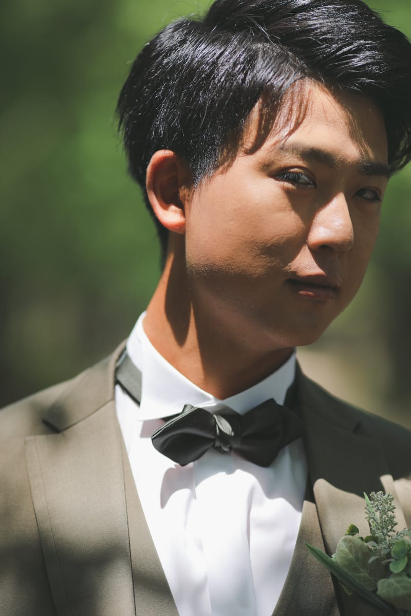 ご新郎様のソロお写真はすこし陰影をつけて、格好良く