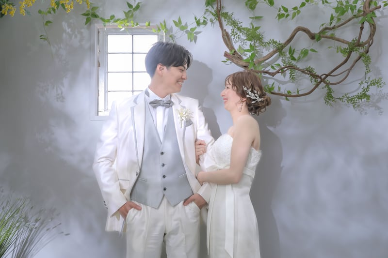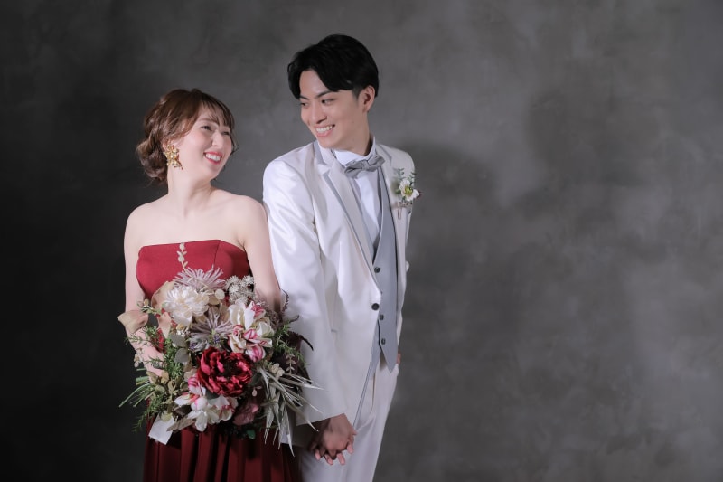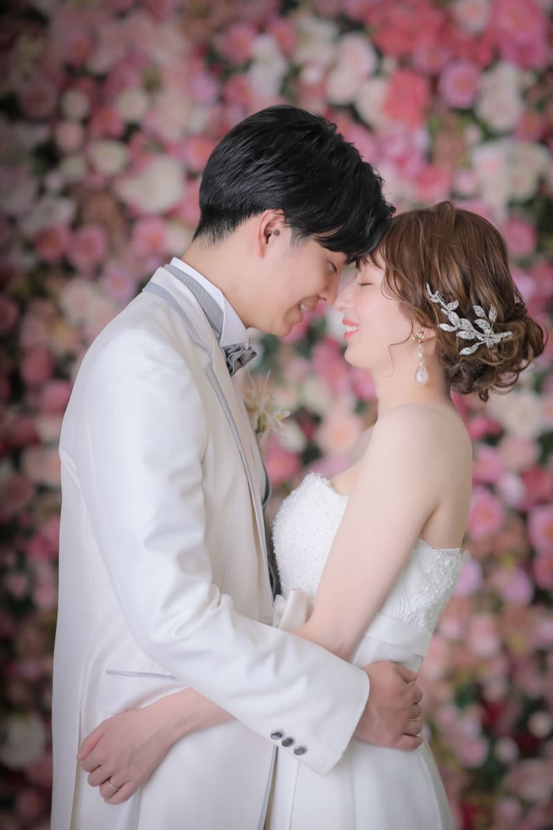 今度は華やかな背景で撮影。お顔の近さに照れている笑顔も素敵です。
