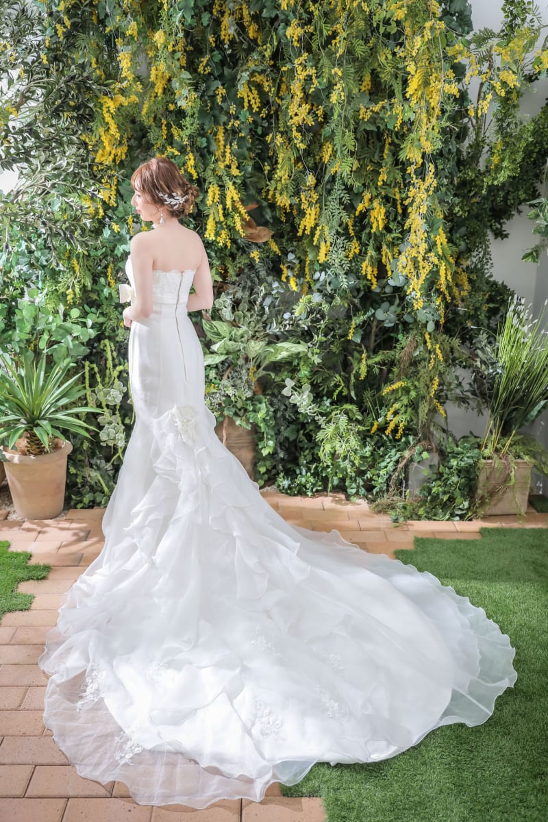 ご新婦様お一人での撮影。ドレスが綺麗に見えるように後ろ姿もしっかり残します。