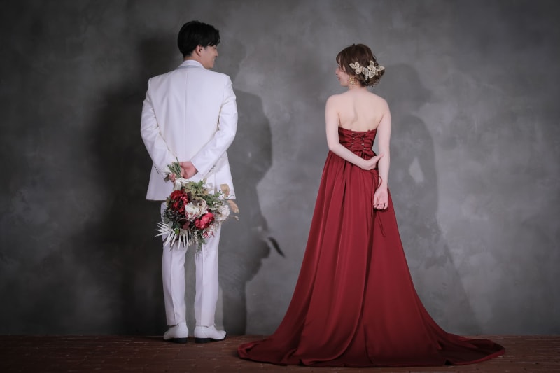 お衣装を変えての後ろ姿はお二人ご一緒にも撮影しました。ご新郎様がブーケを持っているのも可愛い。