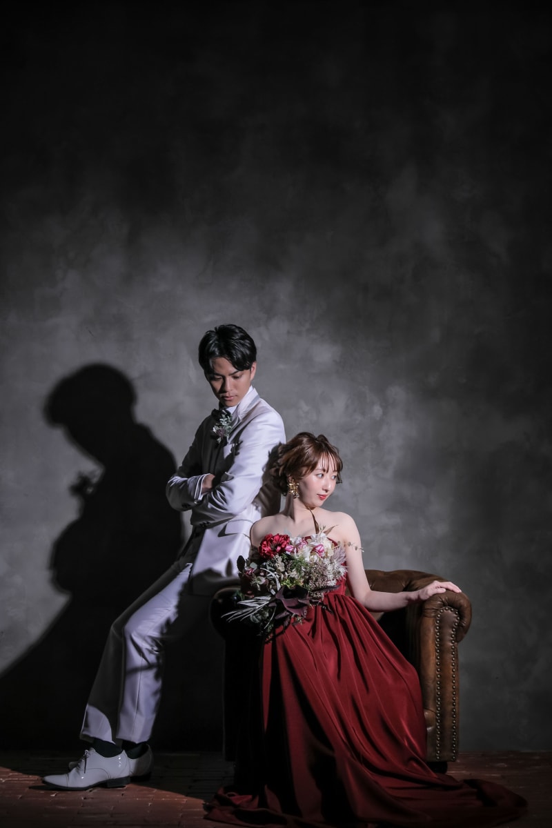 グレーの背景でクールにかっこよく撮影。同じスタジオ内でも様々なテイストで撮影が可能です!