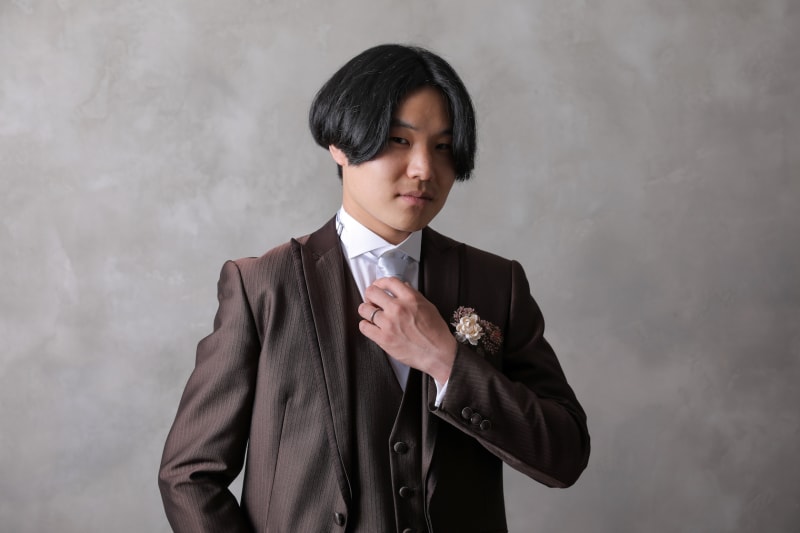 まずは新郎様のお写真から。キリッとした表情がすてきです!
