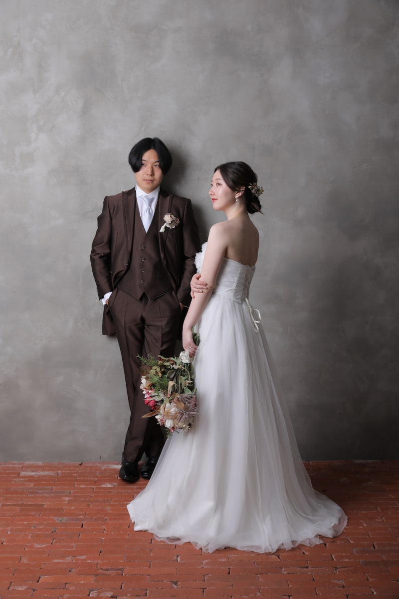 お二人らしさをしっかり写すためにシンプルな背景でも撮ってみました。