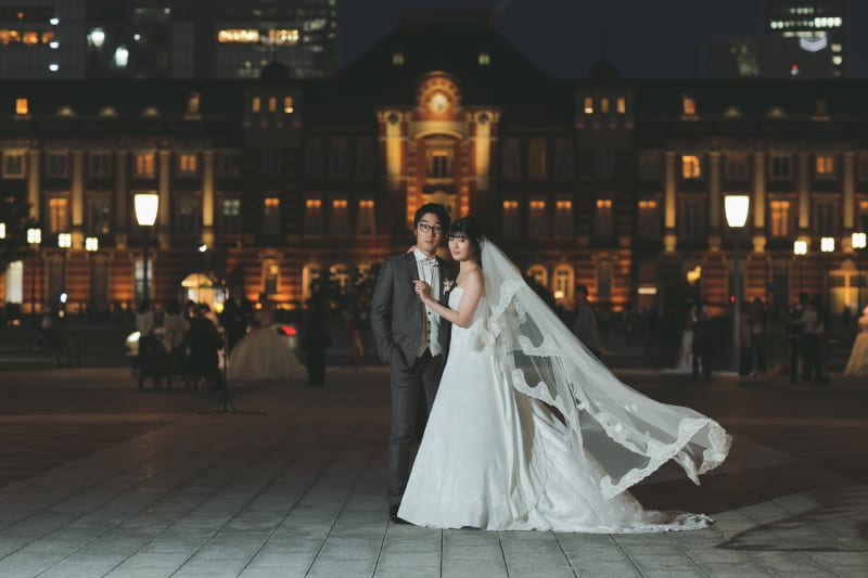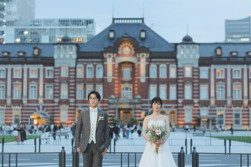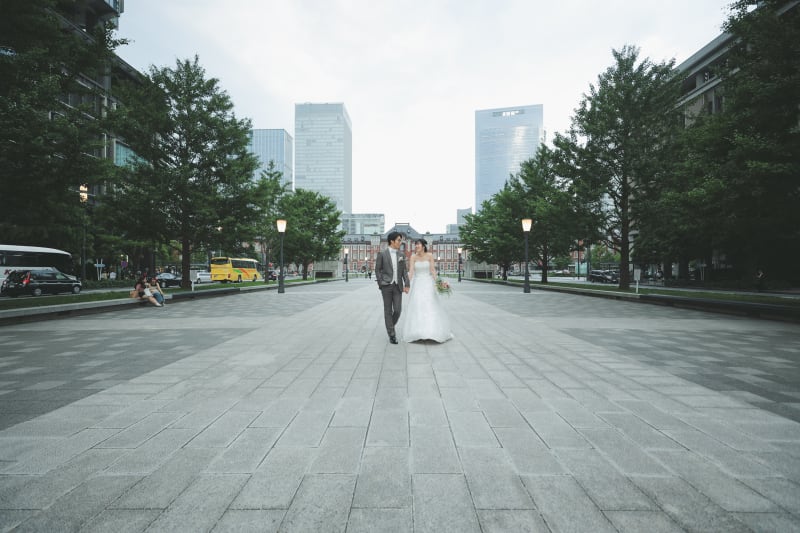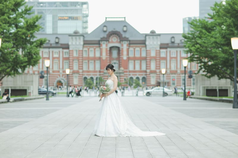 明るいじかんの東京駅舎前 人が少ないので、ひろーい画で撮影できます◎