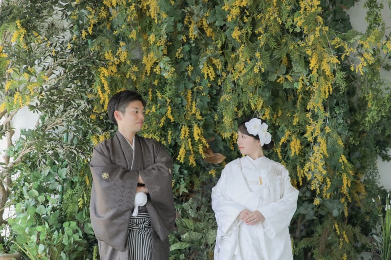 ミモザの黄色とお二人のお着物がしっかり合っています!