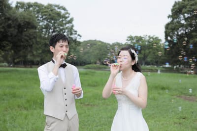 こちらのお客様はシャボン玉をやりたい!とのことでお持ち込み頂きました。なにか小物類を持ち込んでの撮影をご希望のお客様はぜひご相談ください。(※ロケーション地によってはお持ち込み不可の場所もございます。)