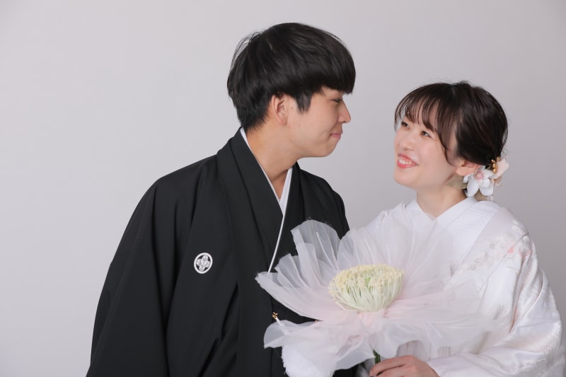 シンプルな背景だからこそ、悩んで決めたお衣装もしっかり際立たせて写真に残すことができます。