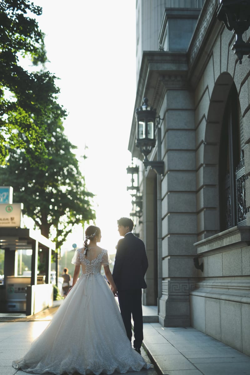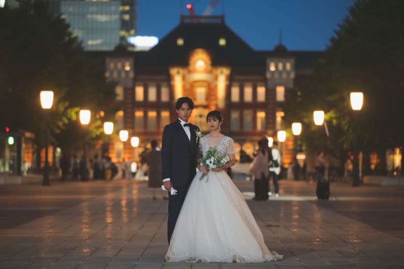 夜は東京駅舎前へ移動。おふたりの全身の姿をしっかりと。