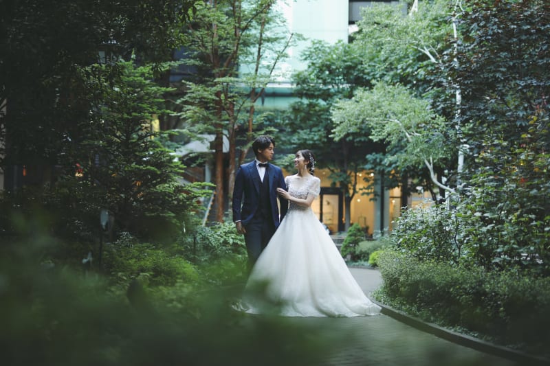 ご新婦様お一人での撮影。ライトで木漏れ日を演出しました。