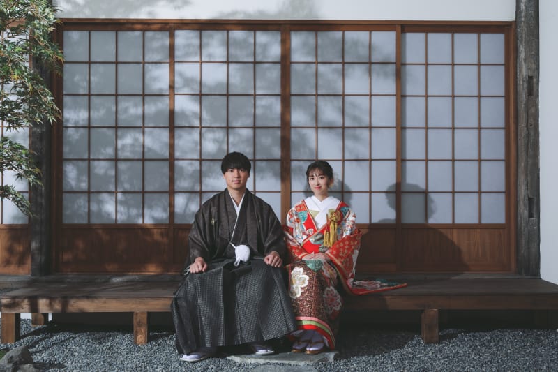 和装だからこそ撮影できる正座カット。年賀状や結婚のご報告に!