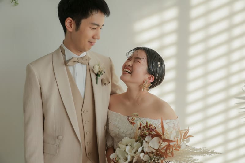 もちろんお二人の写真も撮ります!ご新婦様の笑顔、サイコーです♡