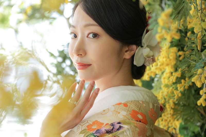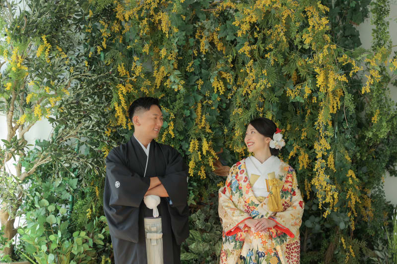 ミモザ×和装、着物の色もばっちりでめちゃめちゃ可愛いです♡