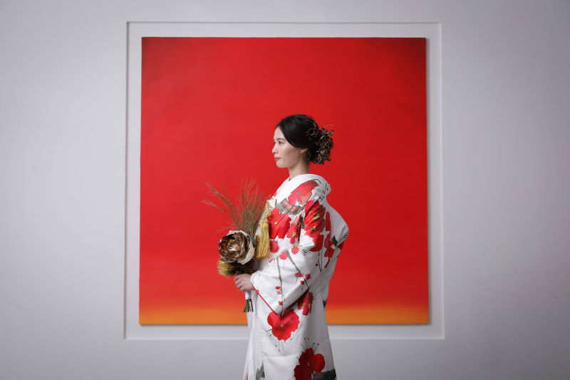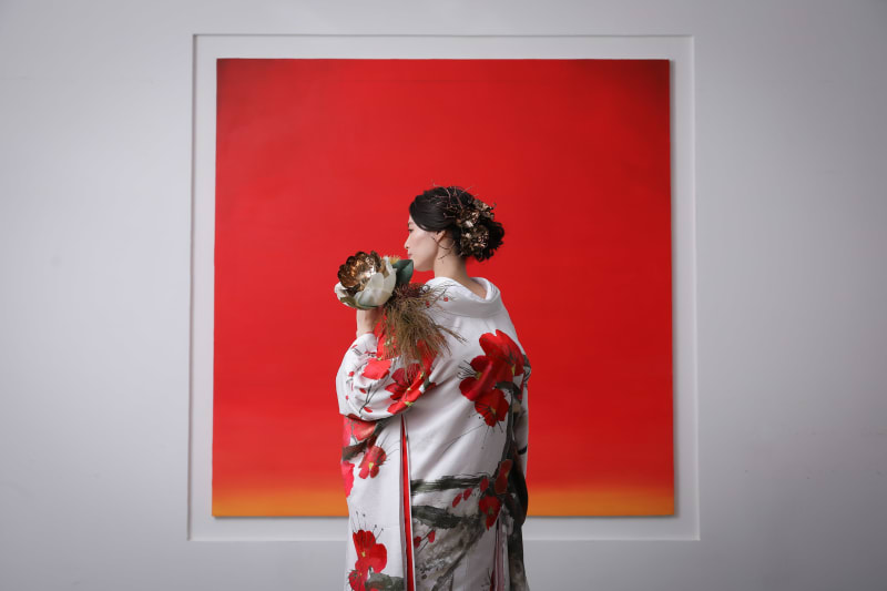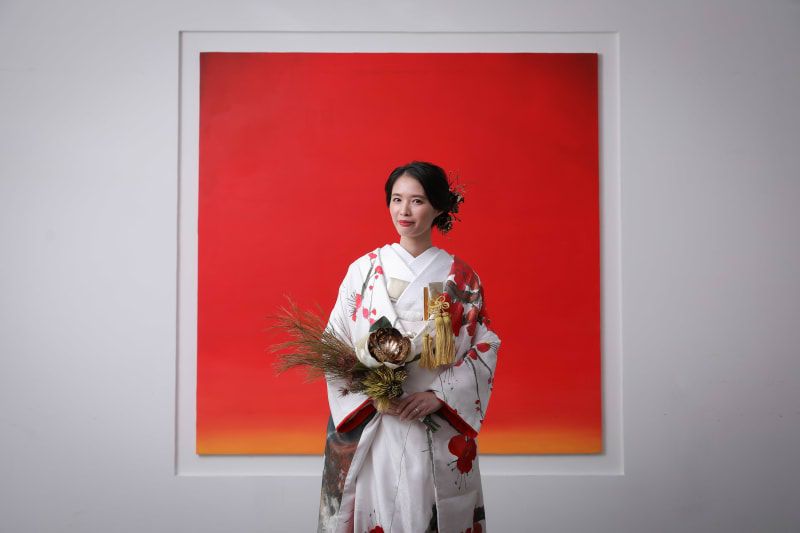 白地のお衣装にシンプルな赤の柄が、より凛とした雰囲気に魅せてくれます。