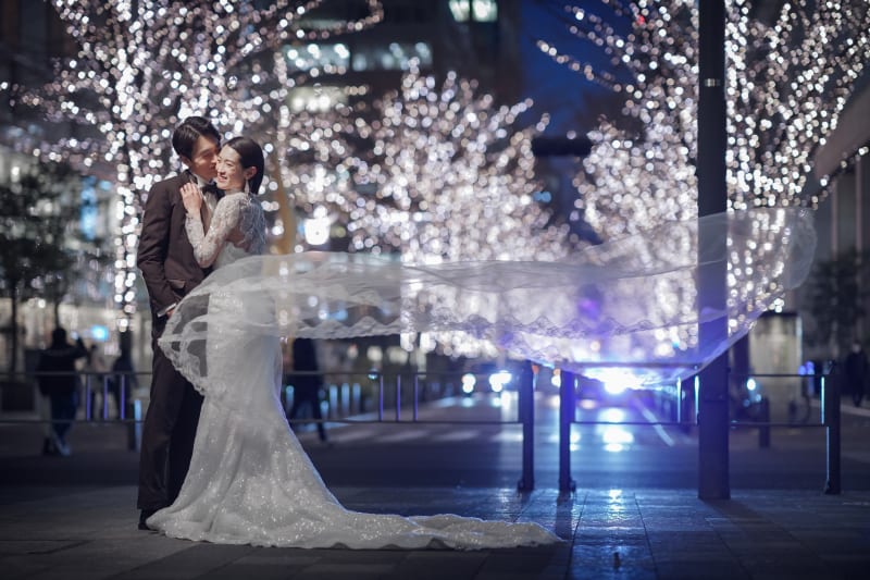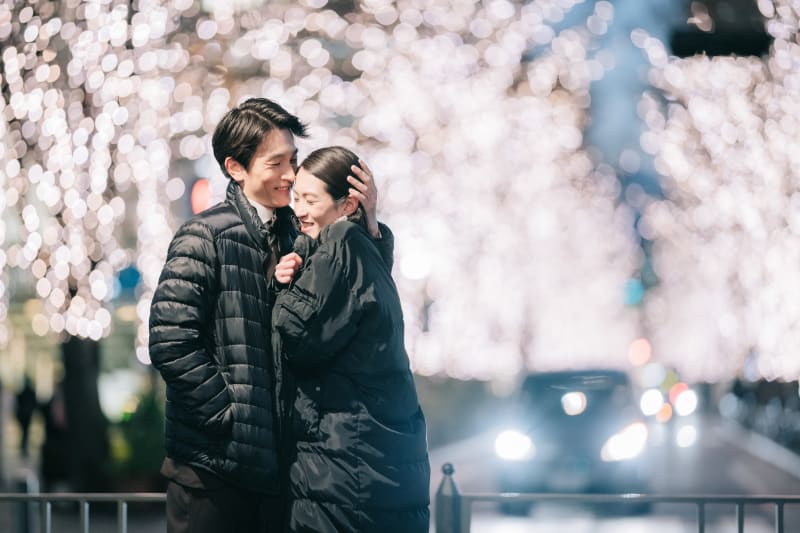 表情が大きく変わる大都会でロマンチックな撮影を