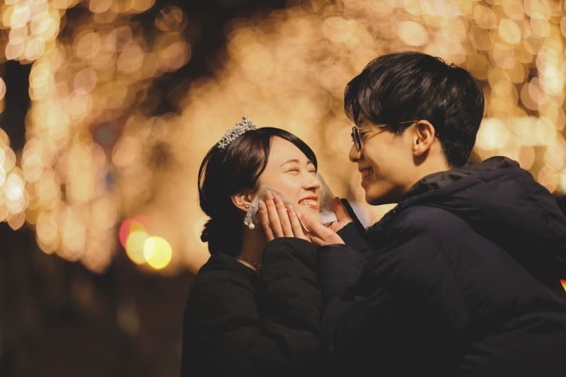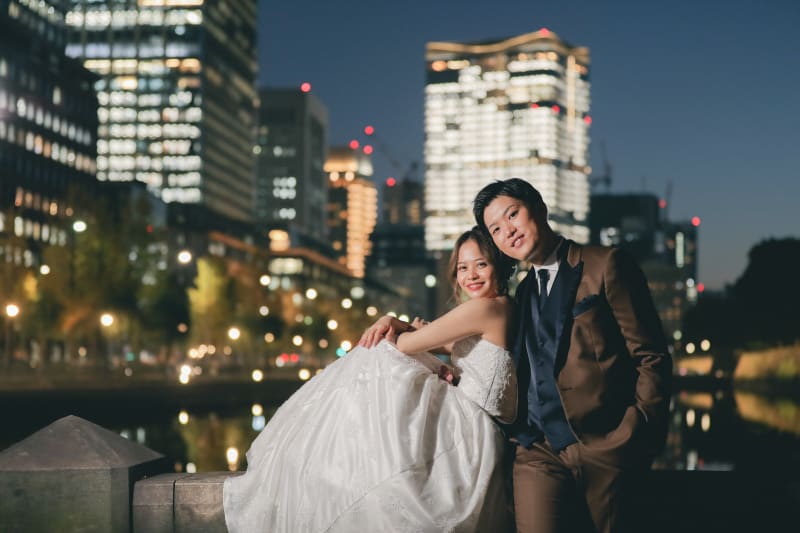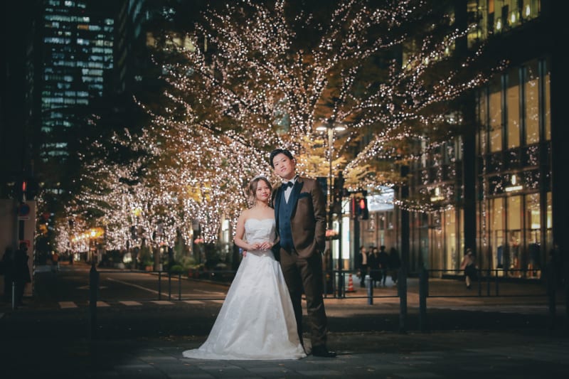 当店の東京周遊ロケーションプランは定番の東京駅と、 この時期おすすめの丸の内イルミネーションも一緒に撮影が可能です!