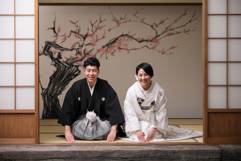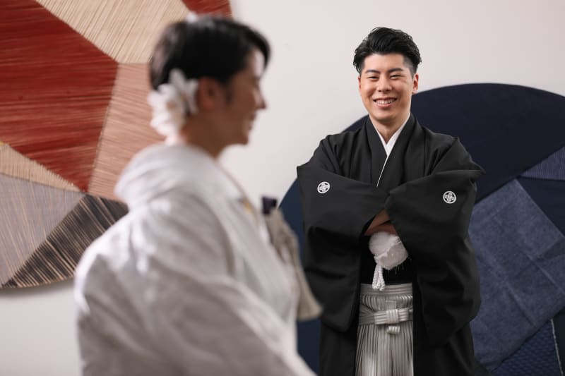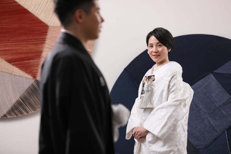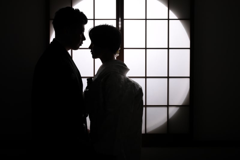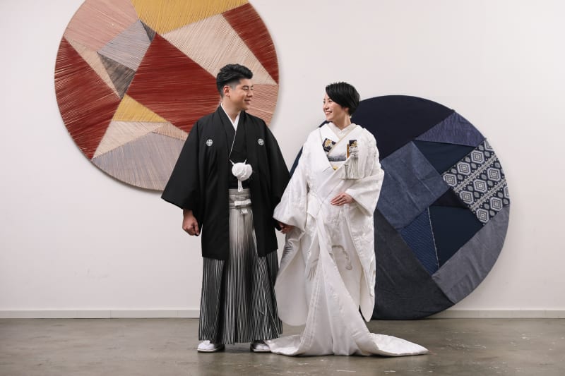 さらに和装に合わせたモダンな背景をご用意していて、一番人気はこの丸い背景◎