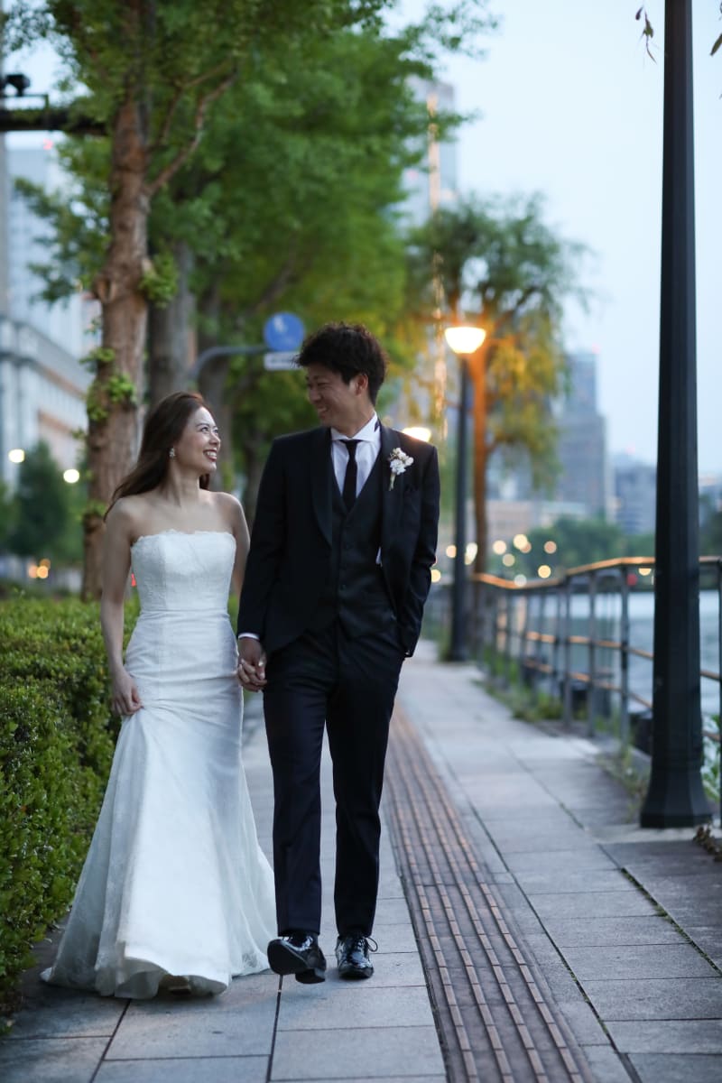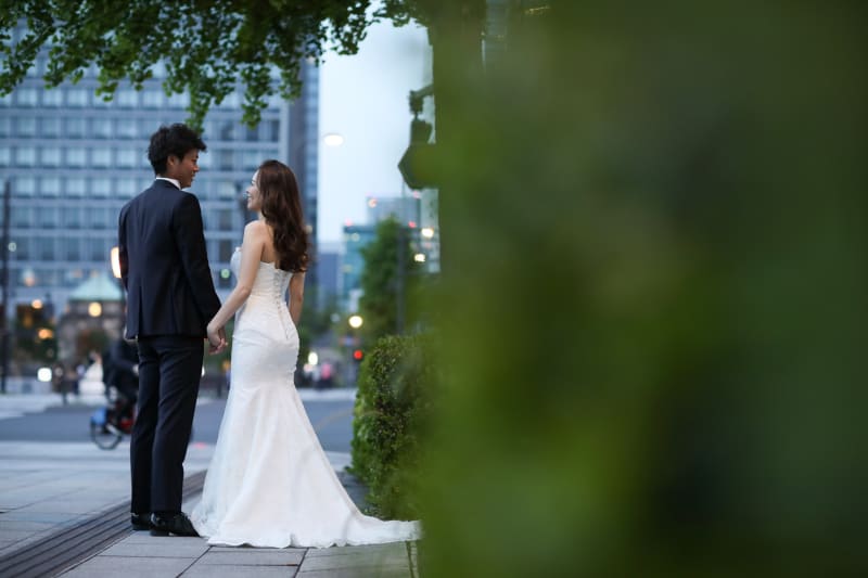 明るい時間から撮影することで、街路樹の緑や夕景とも撮影することができます!