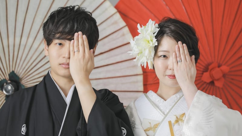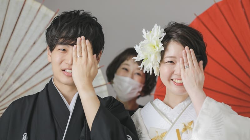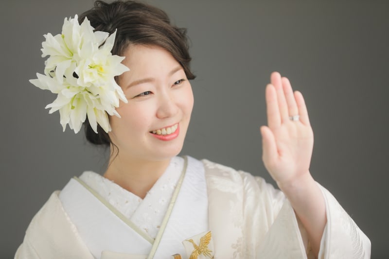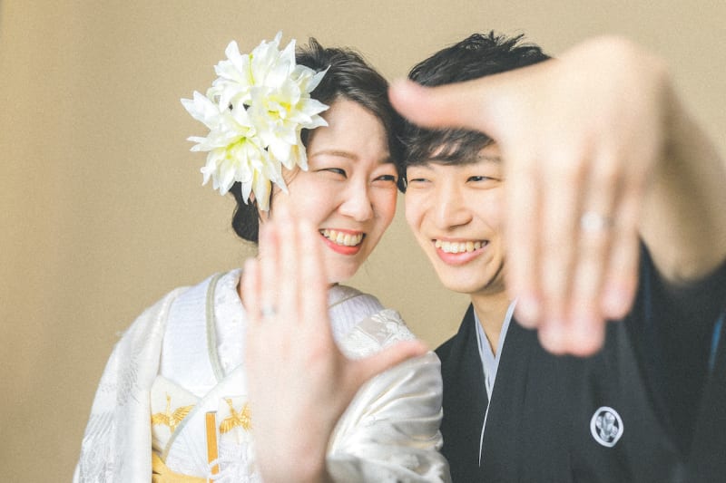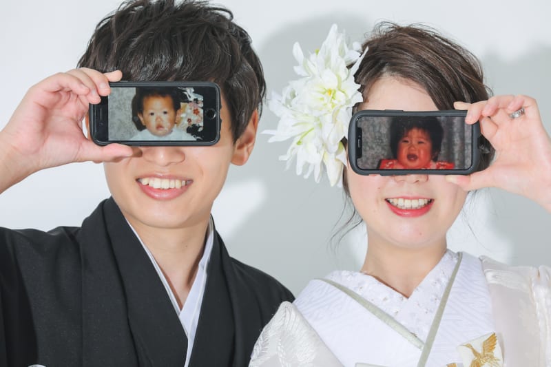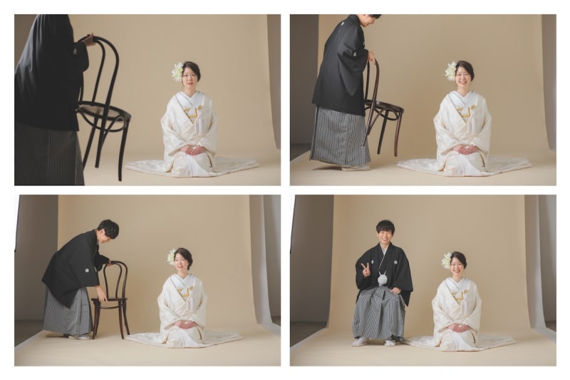シンプルな背景ながら、おふたりに合わせて様々なバリエーションで写真が残せるプラン。